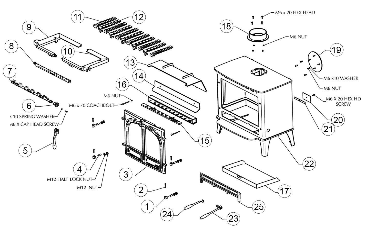M6 x 20mm Hex Head Screw - Single Screw 4 Required Per Stove