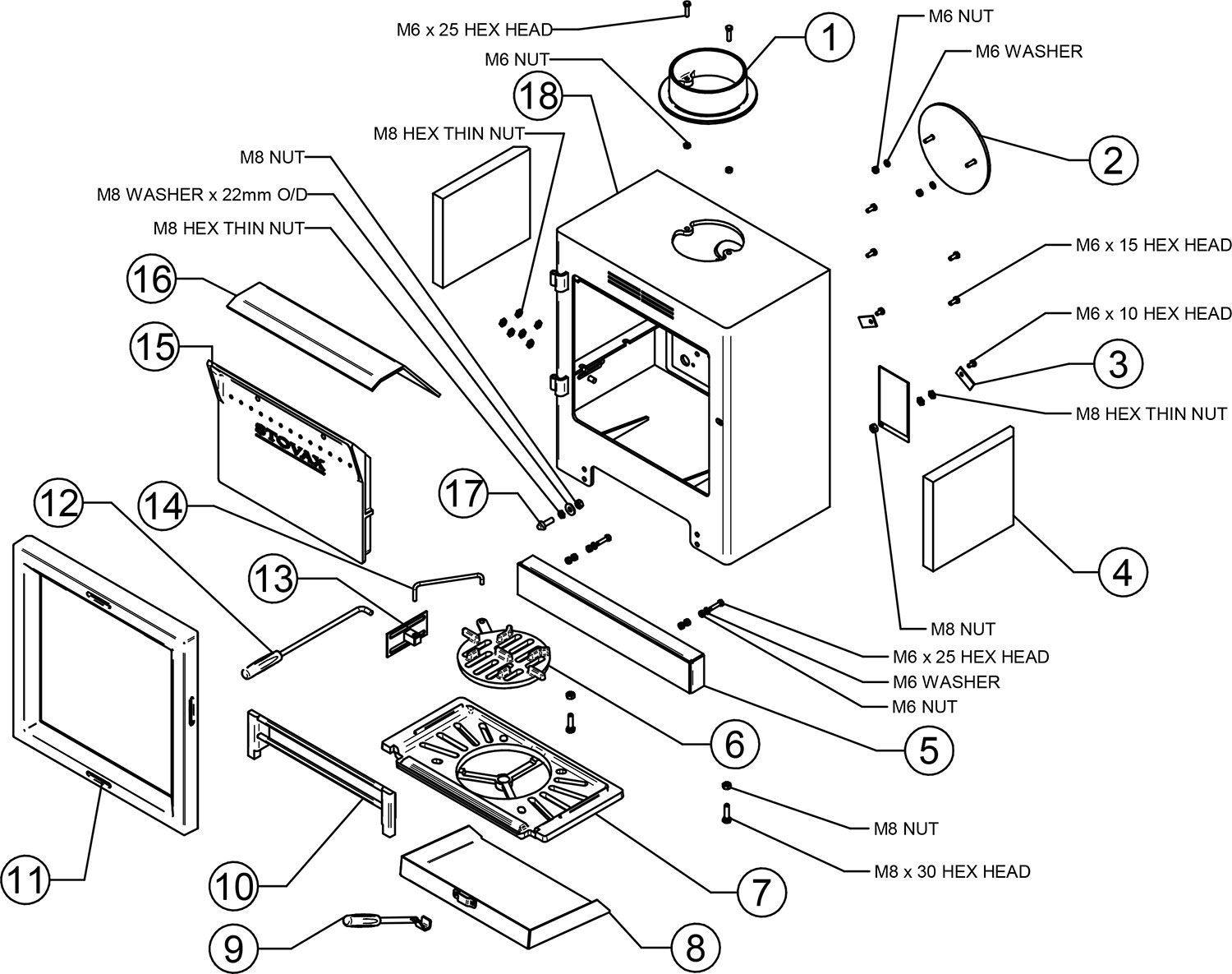 M6 x 15mm Hex Head Screw - Single Screw Cleanburn Chamber Screw - x4 Required