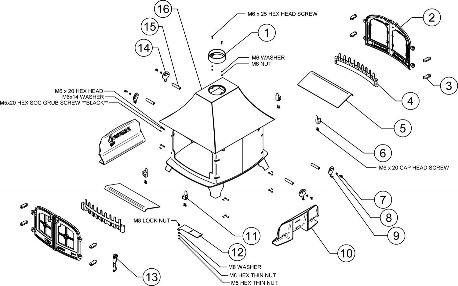Mk2 Yeoman County Low Canopy, Double Door, Double Sided, Double Depth, Wood Burning Stove